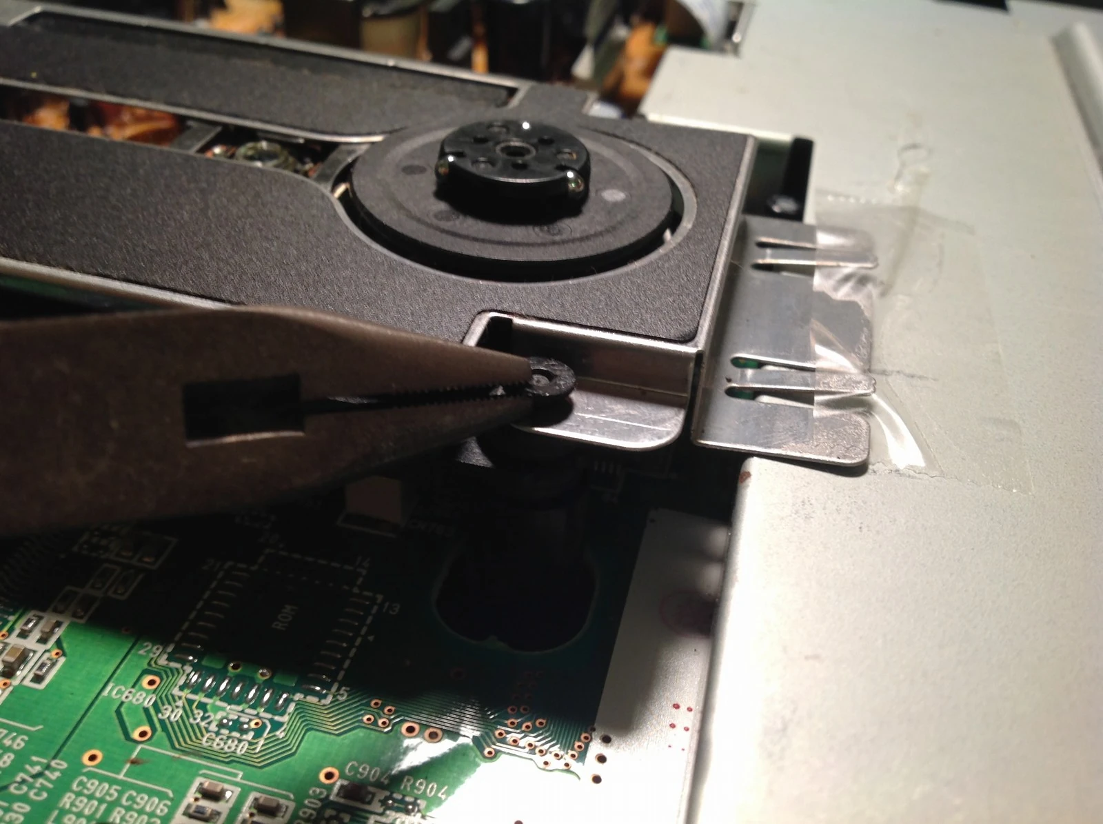 - Don't forget to reapply the tape connecting the CD drive to the top RF shield